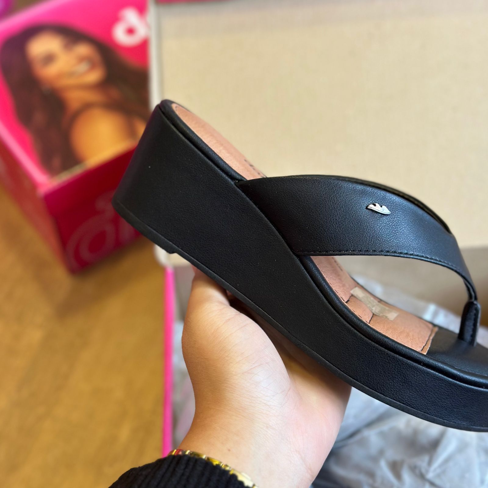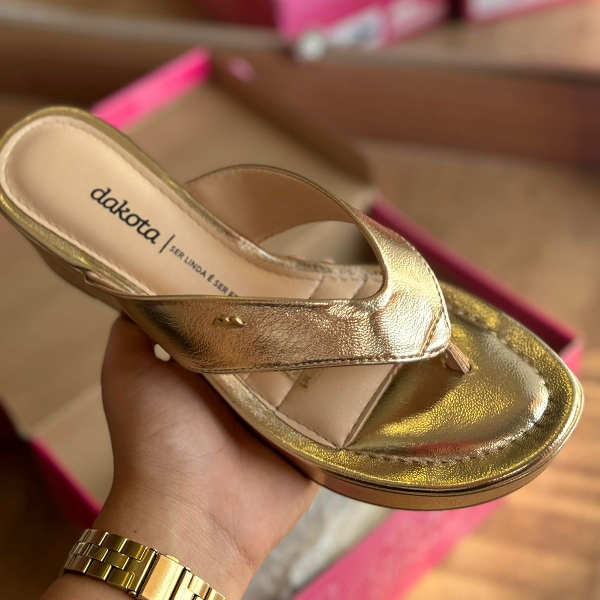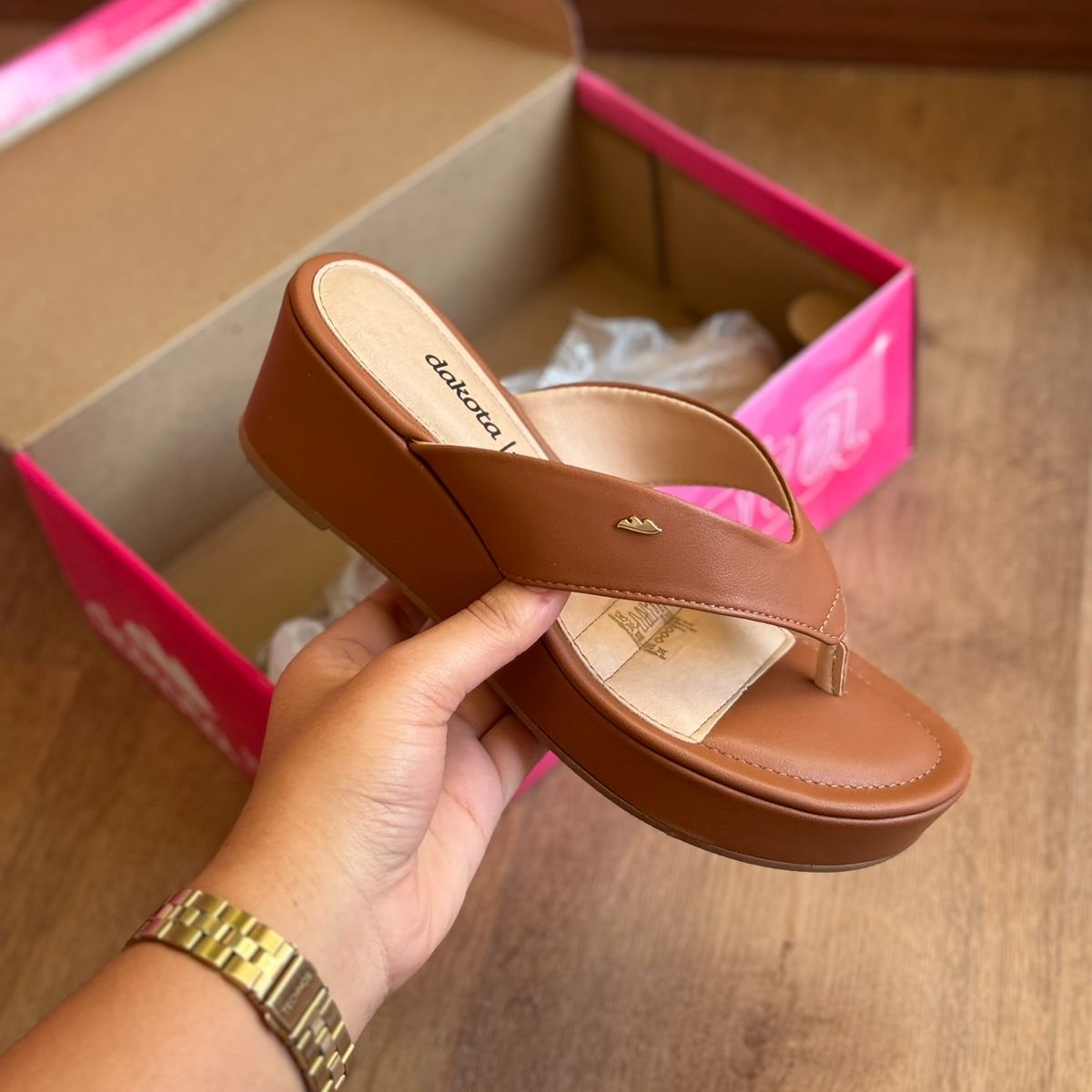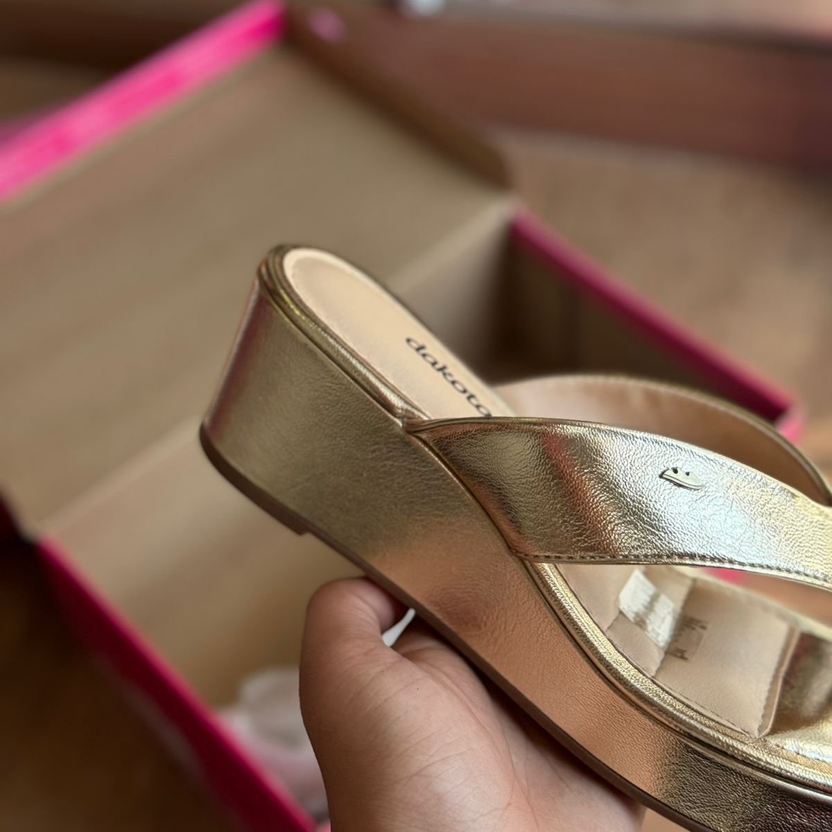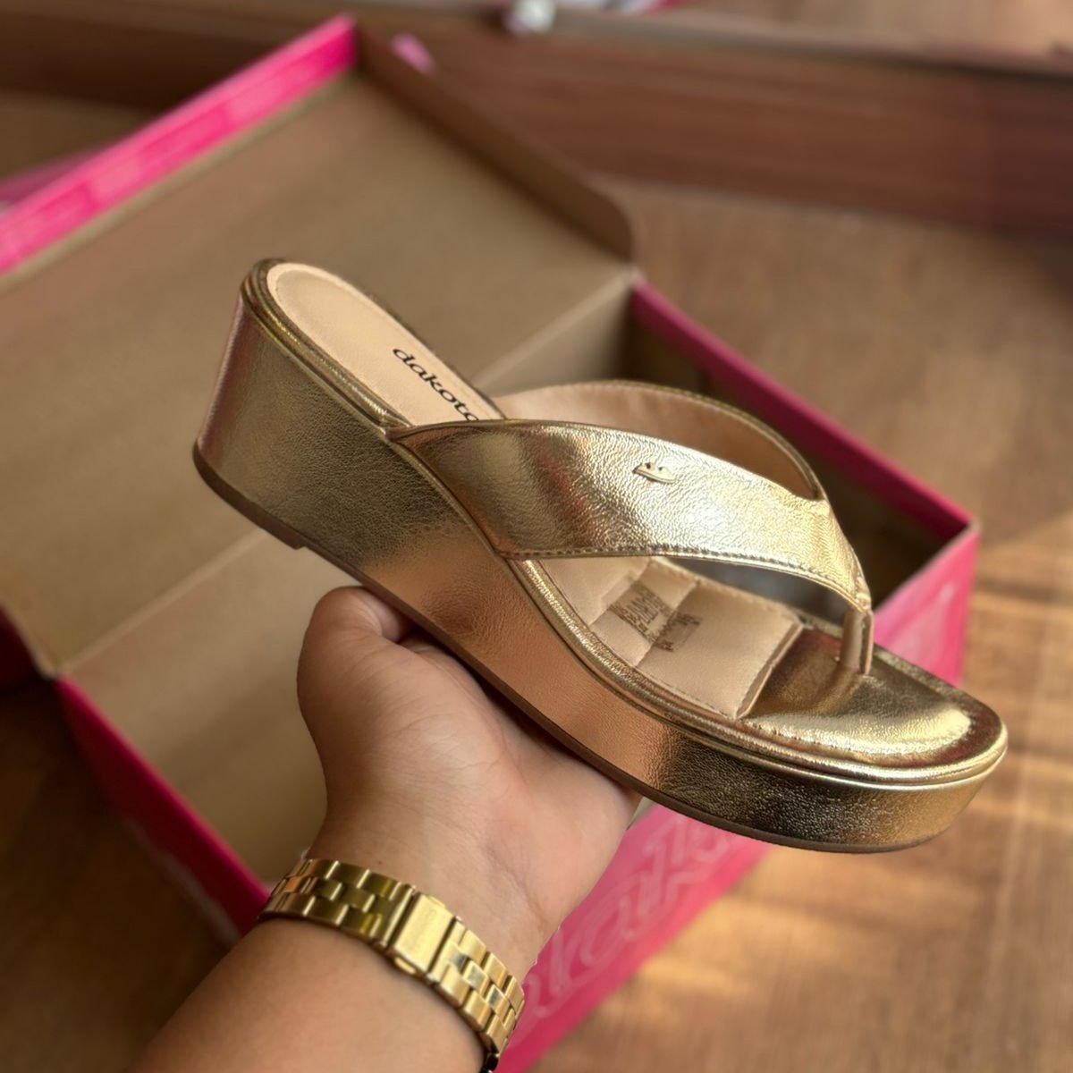 Garantindo durabilidade e conforto. Seu bico é aberto, proporcionando frescor aos pés. O fechamento é ajustável, assegurando praticidade ao calçar. A palmilha é macia e anatômica, oferecendo suporte durante o uso prolongado. O forro interno é revestido com material têxtil, proporcionando um toque suave à pele. O solado é feito de borracha, garantindo aderência e estabilidade. Possui salto plataforma com 5,0 cm. Detalhes em metalizado nas tiras conferem um toque de elegância ao design minimalista da sandália.