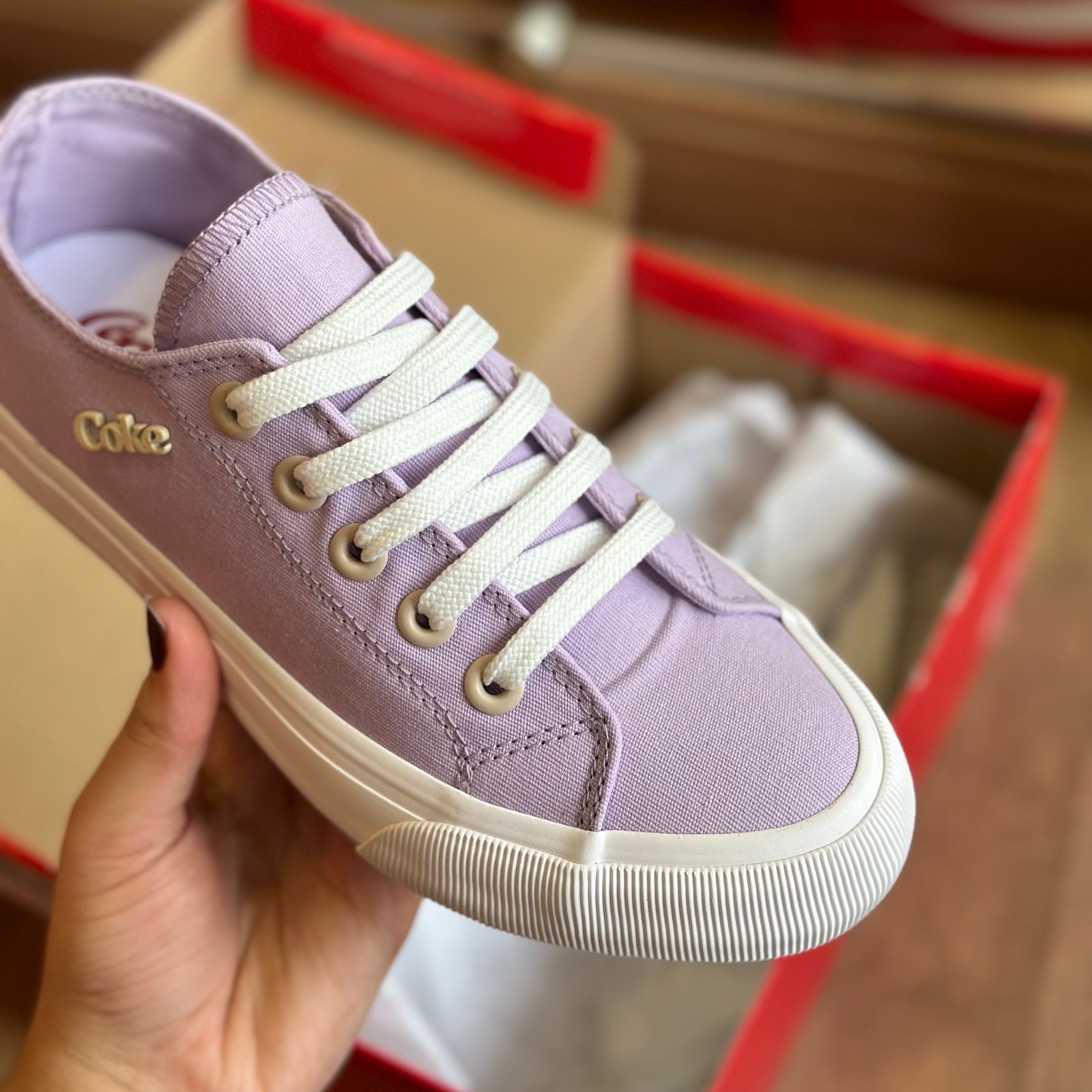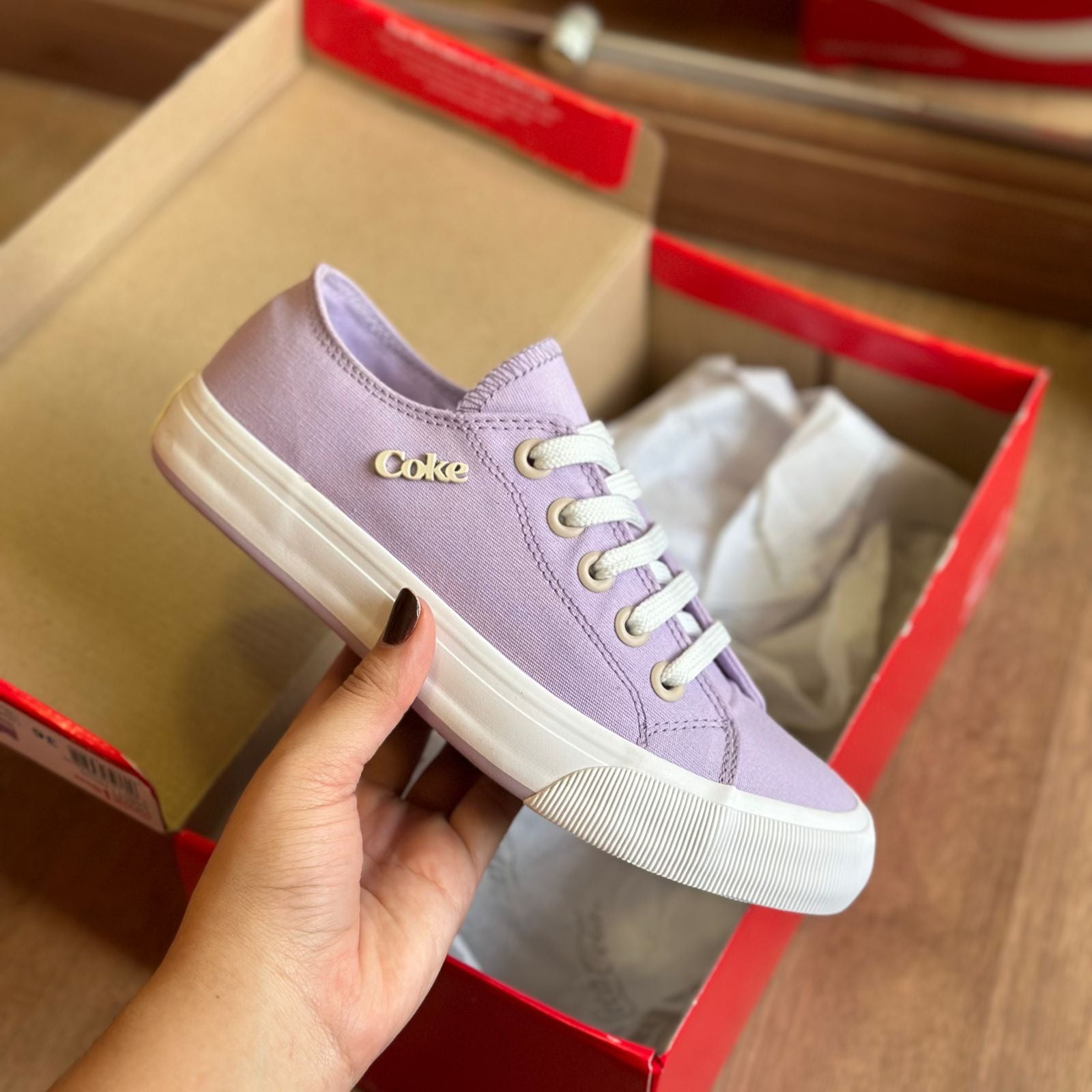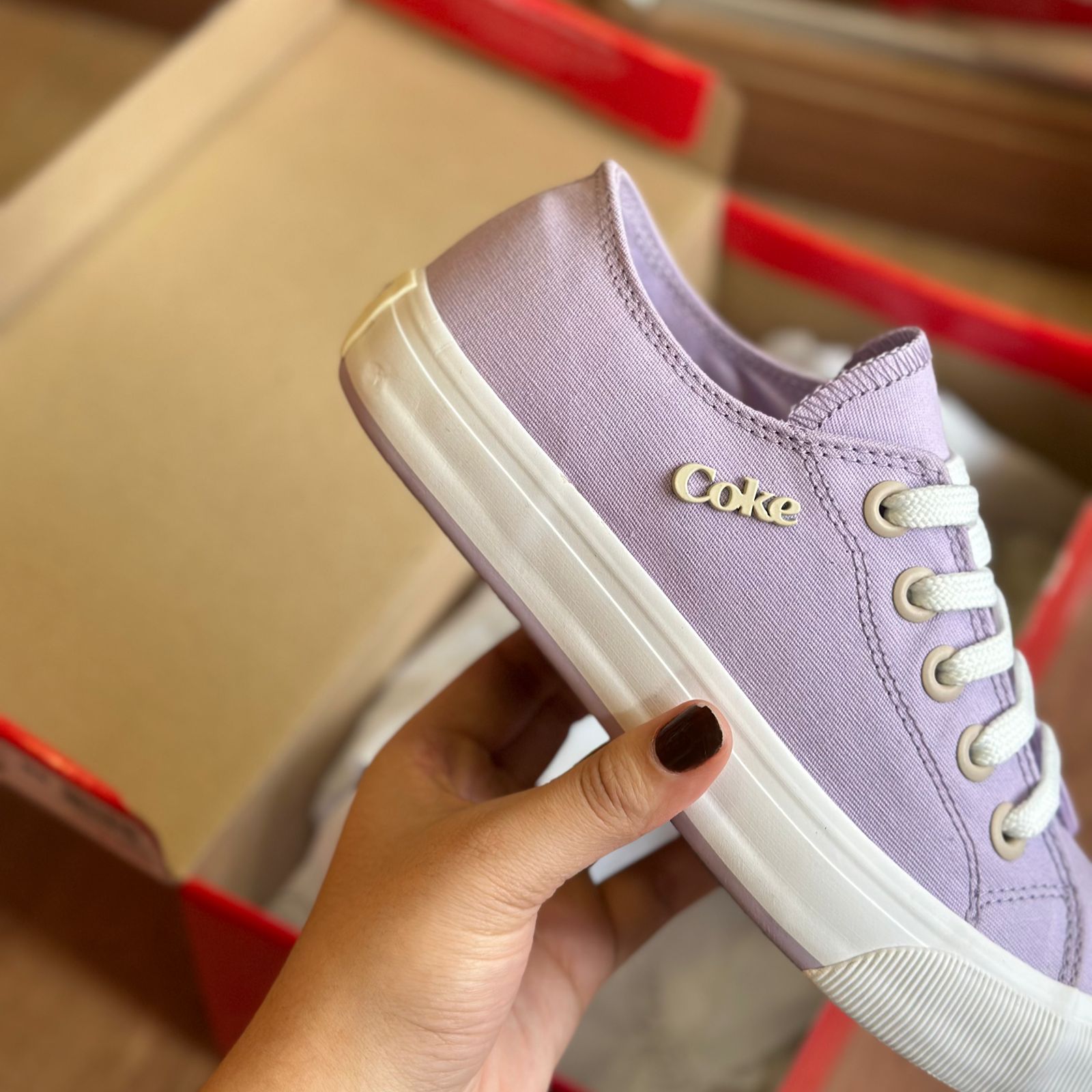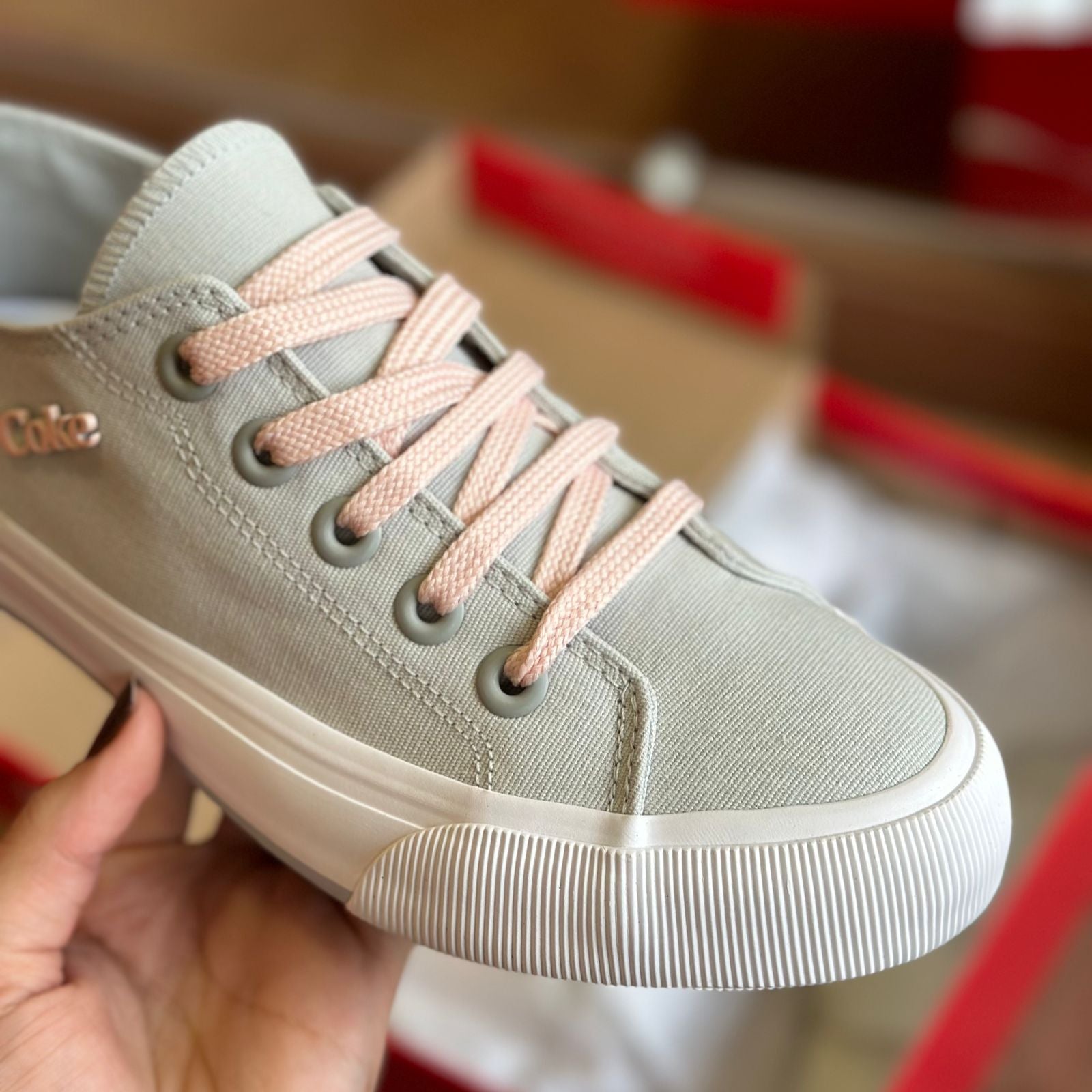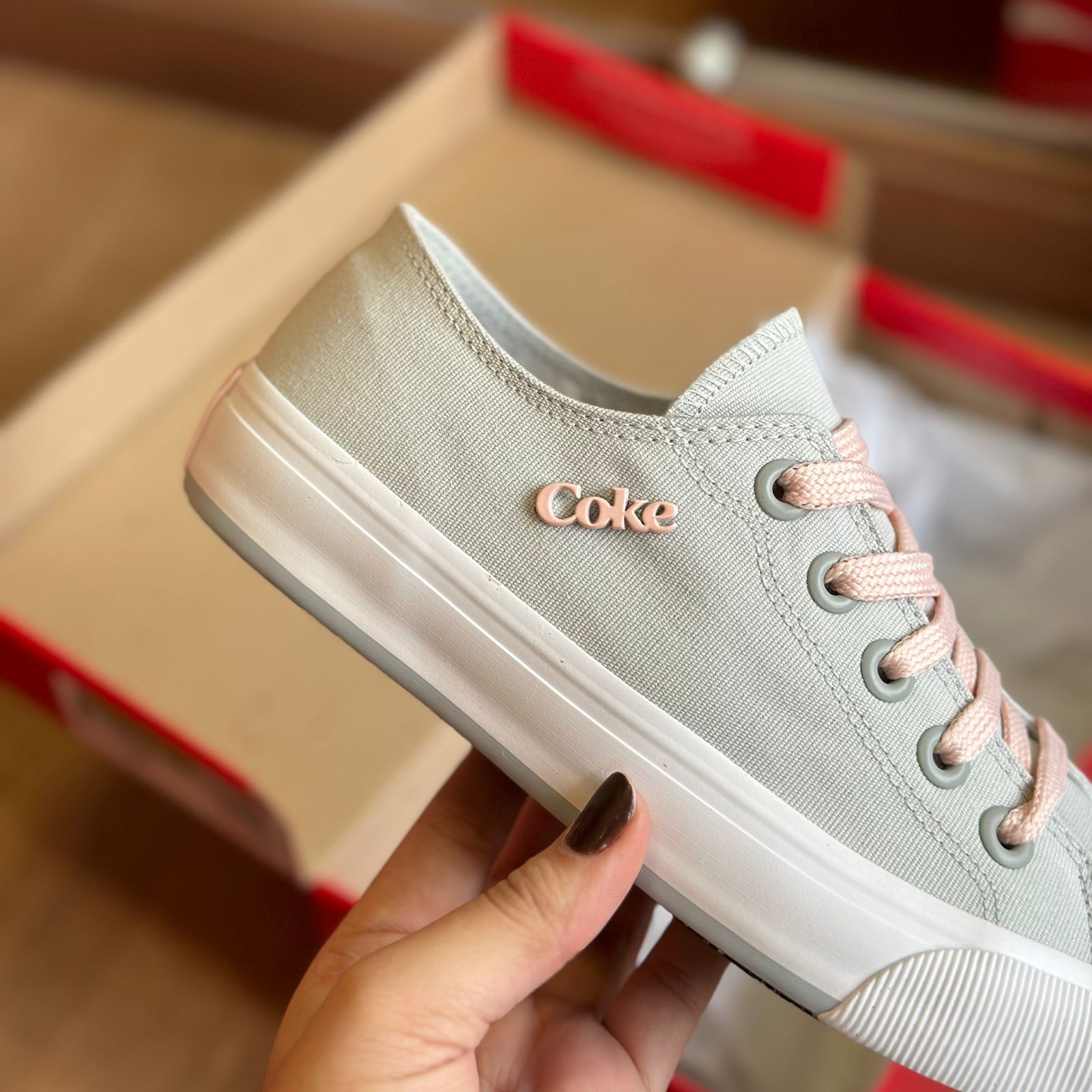 Com um design casual e moderno, o tênis Sandy CC2444 é perfeito para diversas ocasiões, desde passeios até encontros com amigos. O material canvas proporciona um visual despojado e estiloso, enquanto o detalhe da logo COKE na lateral adiciona um toque de autenticidade e personalidade. Os cadarços rosa complementam o design de forma elegante, garantindo um ajuste seguro e confortável.