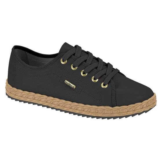 O Tênis da Moleca é ideal para acomodar os pés e os manter livres de incômodo. Esse modelo incrível é feito com material sintético, as palmilhas são macias para acomodar os pés além do solado emborrachado com entressola imitando corda tramada e fechamento por cadarço. Um modelo prático e versátil que pode ser usado no dia a dia com vestido, saias e shorts em diversas ocasiões.